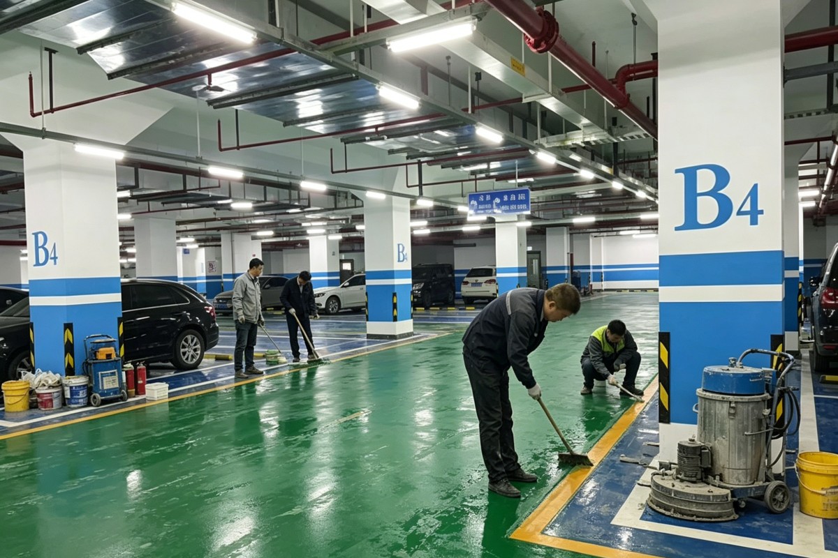 沈阳新民停车场车库聚氨酯地坪施工厂家